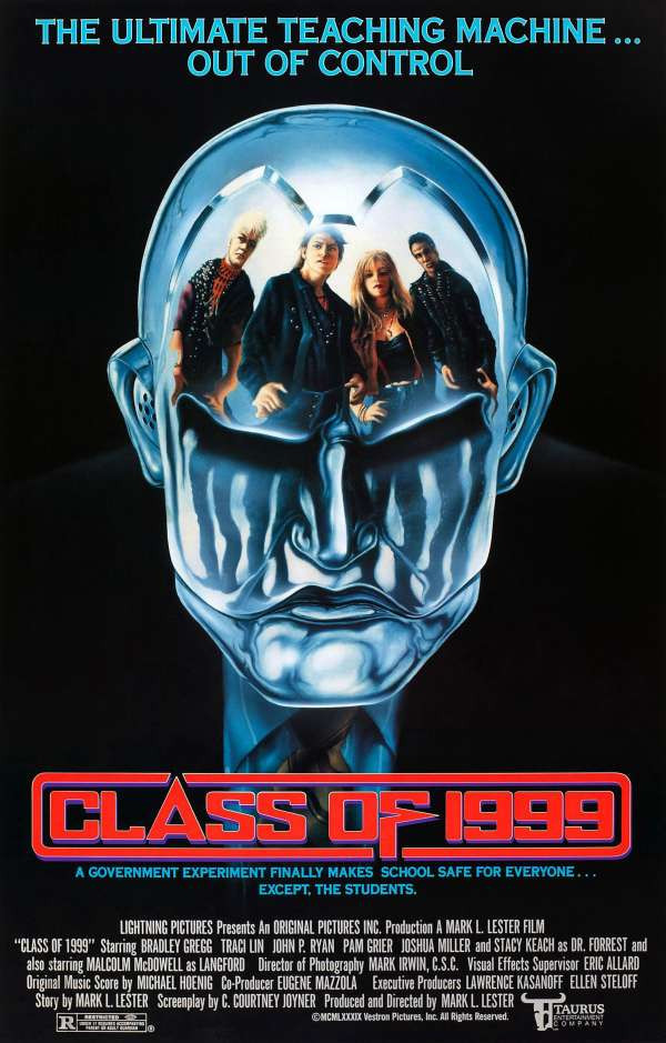 Пожалуй, «Класс 1999» — один из последних фильмов, где Голливуд пытался состричь купоны с темы молодёжных банд, темы на самом деле актуальной для Америки того времени. По сценарию, в одну из школ в неблагополучном районе нанимают новых учителей. Учителя эти, как несложно догадаться, не имели никакой педагогической практике, а были созданы оружейной корпорацией и отправлены в школу в рамках эксперимента.