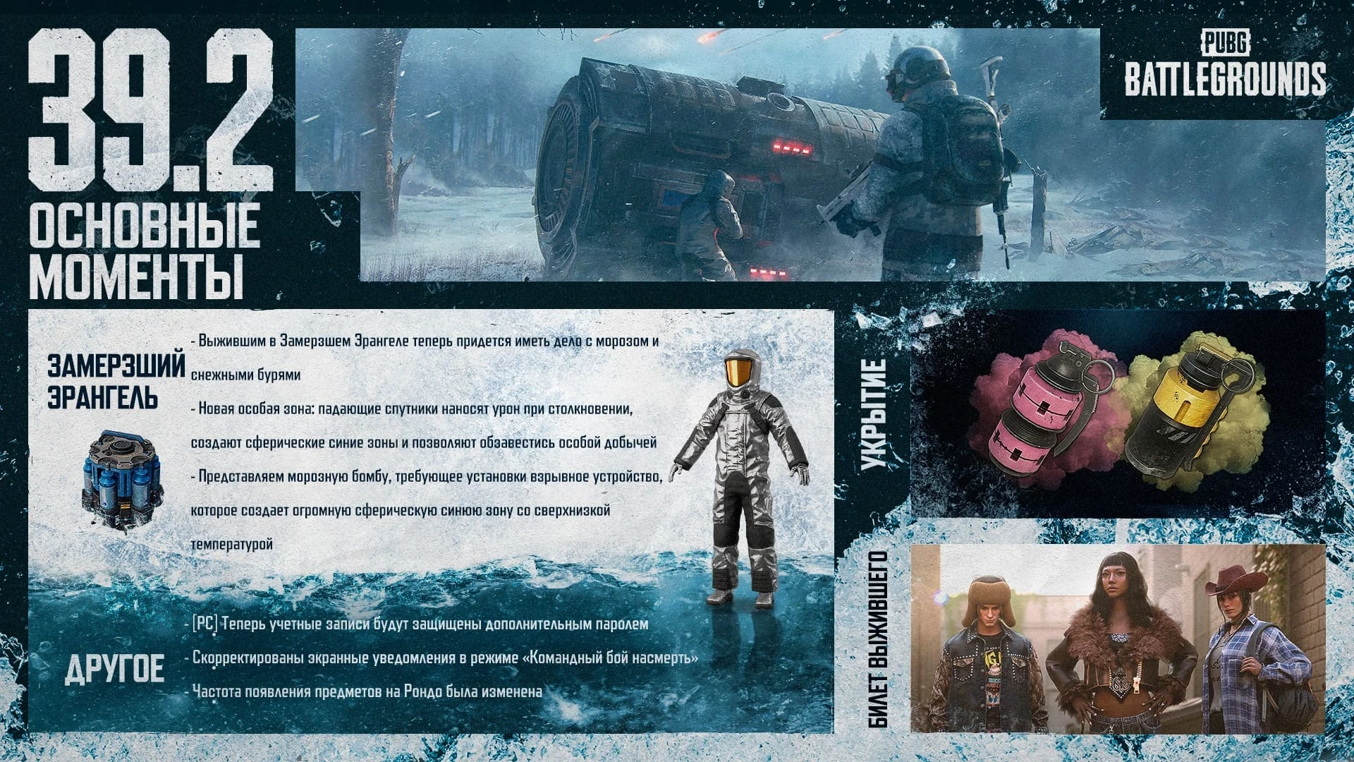 Патч превращает заснеженное поле боя в эпицентр ледяной бури, где не обойтись без защиты. К счастью, в шутере появились термостойкие костюмы, способные держать бойцов в тепле какое-то время. Особенно они пригодятся, когда враги задумают использовать новое оружие — морозную бомбу.