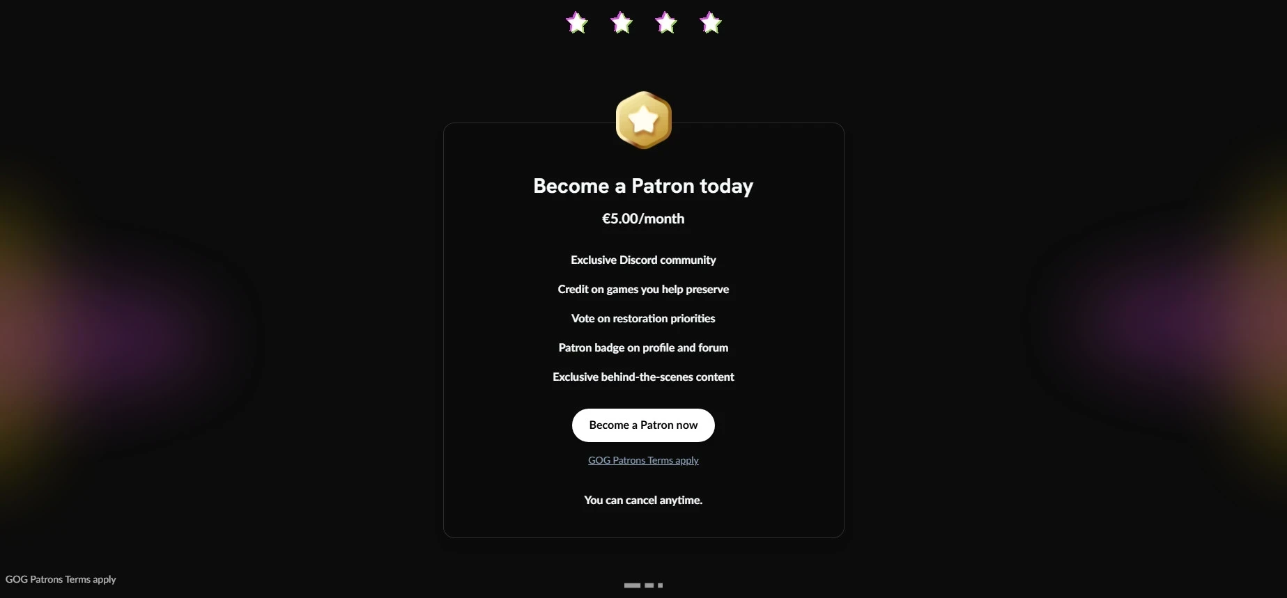 Страница оформления GOG Patrons